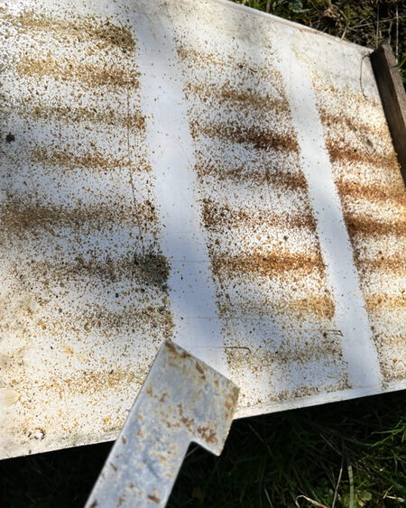 Auch wichtig, den Bodenschieber zu säubern. Hier liegen die Wachsdeckel der Futterwaben, aber auch Pollen und sonstiges Gemüll. Gesäubert, wird der Bodenschieber wieder eingeschoben. So ist der Boden geschlossen und ein unnötiger Wärmeverlust wird vermieden.